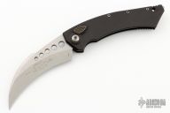 This Hawk Auto by Microtech Knives features a stonewashed hawkbill blade. The handle has a black aluminum frame with blasted stainless steel hardware and tip up clip. Dated 01/2020 and s/n 487. Comes with original box and papers. Excellent condition.