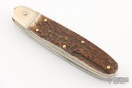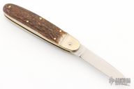 This leverlock auto by Hubertus features a mirror polished blade, nickel silver bolsters, stag scales, and brass liners and pins. Opens with a nice snap. Very fast opening. Has some light scuffs and scratches, otherwise excellent condition.