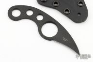 This La Griffe by Emerson Knives features a black coated chisel ground blade. The handle is skeletonized for a lighter overall weight. This knife was designed by Fred Perrin. Comes with Kydex sheath. Dated 2011 and #8214. Excellent condition.