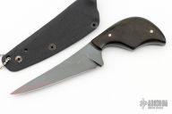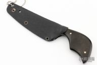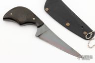This Expert Neck Knife from Fred Perrin features a gun blued blade with visible temper line, .110" blade stock and 1" blade depth. The handle is comprised of black micarta scales with nickel silver pins over full tang construction. Includes kydex sheath. Sheath marks on blade, but otherwise excellent condition.