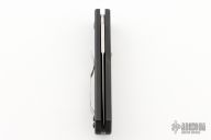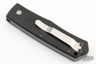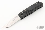 This Corby Tanto Auto by Al Mar Knives has a tumbled and polished drop point tanto blade with false top edge. Handle is black anodized aluminum with safety auto button, milled ribs, stainless steel tip up clip, and lanyard hole. Has a few light scuffs and scratches, excellent condition otherwise.