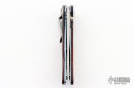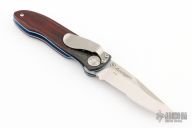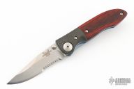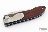 The 690 Elishewitz is a discontinued linerlock folder by Benchmade. It features a clip point satin finished partially serrated blade with carbon fiber dovetailed bolsters, rosewood scales, and anodized titanium liners, tip down stainless steel clip. Has some scratches, otherwise good condition.
