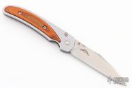 Benchmade's Opportunist Aluminum and Wood Plain Edge Blade Knife is as handsome as it is functional. The Opportunist Knife, an Osborne design and Benchmade Blue Class member, is a full-function folder with some serious style. The T6 Aircraft Aluminum Handle features stabilized real wood onlays for handsome, rugged durability and strength. A modified locking-liner delivers smooth, one-handed opening and at-your-fingertips function. The plain-edge blade is made from S30V stainless steel and utilizes a drop-point design to give you added control and strength. Lightweight for easy pocket carrying, it also features a lanyard pin for versatility. Excellent condition.