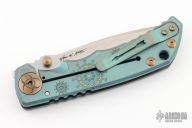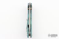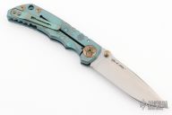This Harsey framelock folder by Spartan Blades features a stonewashed drop point S45VN blade with dual thumbstuds and a notched thumbrest. The handle has an anodized titanium frame with a laser engraving a tip up titanium clip and filler tab. Has nice detent, lockup, and blade seating. Comes with original box. Excellent condition.