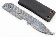 This knife by Strider Knives features a flamed titanium blade with chisel grind but the final edge is ground on both sides, .126" blade stock and .936" blade depth, full tang construction. Comes with kydex sheath. Excellent condition.