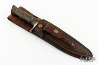 From the Brend website: "The Model Two has always been Walter’s most popular knife. When customers make that final decision what knife they would like to order, nine times out of 10 it is the Model Two. The above photo is an early vintage Brend Model Two. In 1981 when Walter started making knives, the Model Two was one of the first designs out of his shop. The design came from his early years of hunting in the swamps of Florida, to 15 years of cutting meat. Walter new what he wanted in a custom knife, and that is reflected in his knives. Several knife companies had collaborations with Walter. It was always the model two design, they tried to replicate, even in a pocket knife. When you see this blade and handle style you know it is a Brend Design. Brend designs,(Model 2, Model 5, Tanto, and Tommy Hawk) has influence many other makers and companies."
