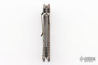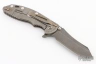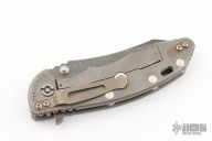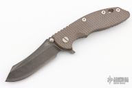 This XM-18 Skinner from Rick Hinderer Knives features a 3.5" blade, notched thumbrest and flipper, dual thumbstuds. The handle has a brown G-10 scale, and working finished titanium handle, tip up or down pocket clip, fuller tab and standoffs. Clip can be mounted for tip up or down carry. Nice lockup, seating, and detent. Has a few light scuffs, otherwise excellent condition.