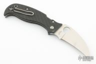This C116CFP Superhawk by Spyderco features a satin finished hawkbill blade with thumbhole. The handle is comprised of textured carbon fiber scales over stainless steel liners and barrel spacers. The wire clip is reversible for right or left hand carry. Comes with original box and papers. Excellent condition.