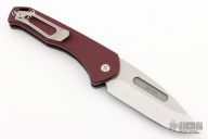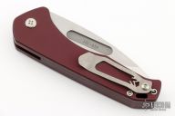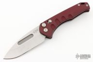 The Praetorian Swift Auto by Medford Knives features a tumbled drop point tanto blade with large fullers. The handle is composed of maroon anodized and tumbled aluminum and features a lanyard hole in the pommel and a titanium tip up pocket. Includes original zippered case, box and papers dated March 29, 2021. Excellent Condition.
