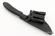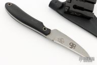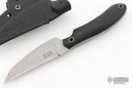 This Disciple by ShivWorks is a Trace Rinaldi design, it has a bead blast blade with a sharpened top edge and black G10 handle, full tang construction, blade thickness of .142" and depth of 1.051".  The bottom edge of the blade is not sharpened. Kydex sheath. Has scratches on the blade, otherwise good  condition.
