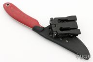 This Disciple Trainer by Trace Rinaldi and ShivWorks features a trainer blade with red G-10 scales. Comes with kydex sheath with TekLok. Excellent condition.