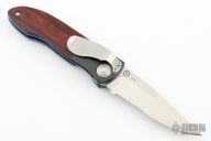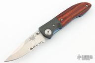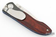 The 690 Elishewitz is a discontinued linerlock folder by Benchmade. It features a clip point satin finished partially serrated blade with carbon fiber dovetailed bolsters, rosewood scales, and anodized titanium liners, tip down stainless steel clip. Excellent condition. Comes with original box and papers.
