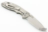 This XM-18 Spearpoint Non-Flipper by Rick Hinderer Knives features a 3" stonewash finished blade, notched thumbrest and flipper, dual thumbstuds. The handle has a green G-10 scale, and stonewash finished titanium handle/clip. Clip can be mounted for tip up or down carry. Nice lockup, seating, and detent. Comes with original box and hardware. Has been resharpened (better than new in my opinion), otherwise excellent condition.