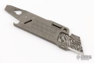 This Rexford RUT (Rexford Utility Tool) from Todd Rexford uses a standard utility razor blade. Blade can easily be replaced. This piece features a functional lanyard hole, flat head screwdriver/pry tip, and bottle opener. Excellent condition.