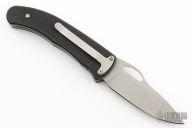 The Double-Duty automatic is a double-action automatic that can function as a one handed opening locking-liner knife or be instantly fired in the automatic mode. The automatic firing mechanism is hidden under the handle and is activated by sliding the front side handle scale towards the back of the knife. Because there are no apparent buttons on the outside of the handle the fact that this is an automatic is known only to its owner. The liners, pocket clip and internal components are stainless steel. The handle is textured black G-10. The knife is lightning fast, good looking and comfortable in the hand. Has acouple light scuffs, excellent condition otherwise.
