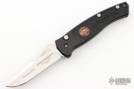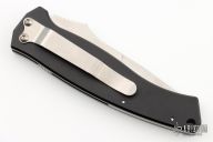 This is a Swift Striker II automatic with a mirror polished blade, notched thumbrest and false top edge. Stainless steel clip, tip down carry. Sliding safety on spine. Excellent condition.