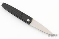 This Spike automatic by Benchmade Knives features a satin finished partially serrated blade and black anodized aluminum frame with black stainless steel tip up clip. Has a few light scuffs, otherwise excellent condition.
