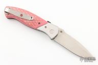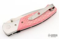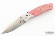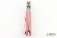 This Side opening automatic features a satin finished blade with dual thumbstuds and swedge. The handle has satin finished bolsters, and jigged pink g10 cales with matching tip up pocket clip and button. Has scuffs and scratches, great condition otherwise.