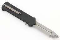 This Cupid #00102 by Rob Dalton features a chisel ground bead blasted double edged blade. The handle is comprised of a machined and gray anodized aluminum frame with bead blasted, tip down pocket clip. Comes with a zippered case. Has some light scuffs and scratches, otherwise great condition.