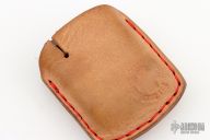 .587" thick Iron Mickey with a leather slip sheath. Excellent condition.