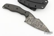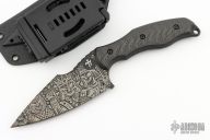 This SB1 Kingsman by Fox Cutlery is a Borka Blades design, it features a black blade with "Kingsman" laser engraving, false top edge and notched thumbrest, .199" blade stock and 1.545" blade depth, full tang construction with carbon fiber scales. Comes with kydex sheath with belt clip and original box. New from maker at the 2023 Blade Show West.