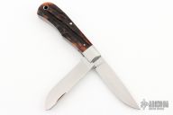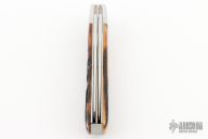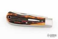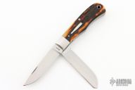 This slipjoint by Jim Dunlap features a hand rub satin finished blades with nail nicks. The handle has stainless steel bolsters, amber stag scales with stainless steel bullet escutcheon, stainless steel liners and springs. Has half-stops, flush in all positions. Comes with a zippered case and COA. New from maker at the 2023 Blade Show West.