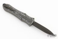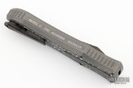 This knife is a Deadlock Model C by Grant and Gavin Hawk. It has a double-edged black blade. The handle has a Fat Carbon inlays in the black titanium frame with a tip down spring clip, titanium. The thumb slide on the handle is also titanium and handle has a titanium overlay. Comes with a cloth pouch. Grant and Gavin Hawk set out to create a double action OTF with no blade play.... They did it, NO blade play. Comes with tool, cloth pouch. New condition.
