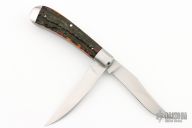 This Slipjoint by Tim Robertson features two hand rub satin finished blades with nail nicks. The handle has stainless steel bolsters, amber stag covers, stainless steel liners and spring. Has half-stop, flush in all positions. Comes with a zippered case. New from maker at the 2023 Blade Show West.