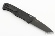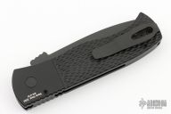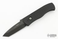 This Emerson/Pro-Tech CQC7 automatic has a chisel ground black DLC tanto blade and a black aluminum textured handle with pearl inlaid push button. Black stainless steel clip, tip up carry. Coil spring. Comes with original box and papers. New from maker!