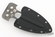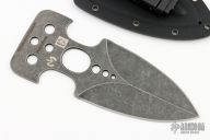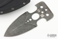 This Prototype Devil's Tongue by Max Knives is a Laci Szabo Design. It features a double edged black tumbled blade with .109" blade stock and 2.562" blade depth, full tang construction. Comes with a kydex sheath. New from maker at the 2023 Blade Show West.