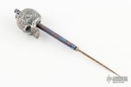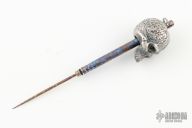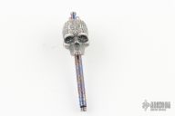 Silver Skull w/ Titanium Toothpick by Max Knives. Toothpick unscrews and can be store in the tube or used as a spike. Comes with a zippered case. New from maker at the 2023 Blade Show West.