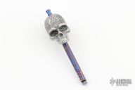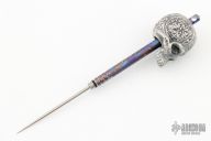 Silver Skull w/ Titanium Toothpick by Max Knives. Toothpick unscrews and can be store in the tube or used as a spike. Comes with a zippered case. New from maker at the 2023 Blade Show West.