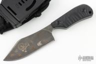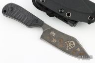 This Baby Bowie by Max Knives is a Fred Perrin design. It has a laser engraved blade with .172" blade stock and 1.464" blade depth, full tang construction. The handle has black G-10 scales. Comes with a kydex sheath with belt loop and neck lanyard. New from maker at the 2023 Blade Show West.