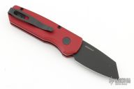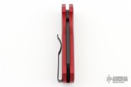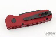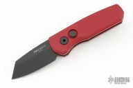 This Runt by Pro-Tech features a stonewashed Magnacut blade.  The handle features a textured red aluminum frame with milled thumbrest, a bead blasted stainless steel tip up pocket clip with a matching push button. Comes with original box and papers. New from maker.