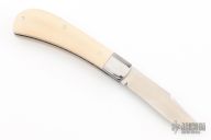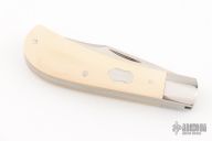 This Slipjoint by Jeff Hawkins features a satin finished blade with nail nick. The handle has stainless steel bolsters, white paper micarta covers with a stainless steel escutcheon, stainless steel liners and spring. Has half-stop, flush in all positions. Comes with a zippered case. New from maker!