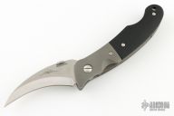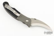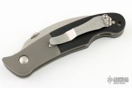 This Custom Super Elvia Prototype by Emerson Knives features a satin finished hawkbill blade with thumbdisc. The handle has bead blasted and dovetailed titanium bolsters, bead blasted titanium liners, black richlite scales, and a stainless steel tip up clip. Comes with original box. Has a couple light scuffs, otherwise excellent condition.