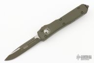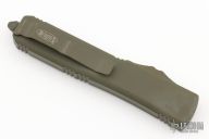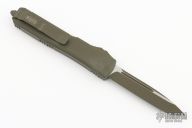 This Ultratech OTF automatic features a two tone green cerakote drop point blade. Green aluminum handle with tip down stainless steel clip. Glass breaker. S/N 146407. Dated 05/2019. Excellent Condition.