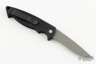 This Mini Reflex by Benchmade features a bead blasted partially serrated blade and a black aluminum handle with black stainless steel tip up clip, lanyard hole at the butt and safety on the spine. Comes with original box and papers. Excellent condition.