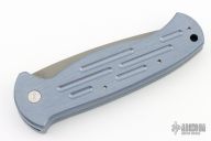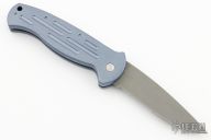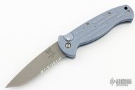 This AFO Automatic from Benchmade features a bead blast finished drop point blade with swedge and partial serrations. The handle is comprised of a Pewter aluminum frame with a lanyard hole in pommel. Has a few scuffs, otherwise excellent condition. Comes with original box, sheath and papers.