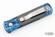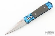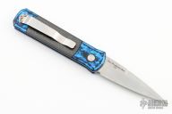 This Godson from Pro-Tech knives features a stonewashed spear point blade with swedge. The handle is comprised of a "Jazz" aluminum frame with carbon fiber scales, stainless steel tip up pocket clip. Nice blade seating, action and lock up. Excellent condition. Includes original box and papers. First Production Run #158