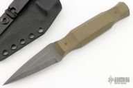 This Pocket Rocket by Auxiliary Manufacturing features an acid tumbled double-edged blade with .124" blade stock and .982" blade depth. The handle has OD Green G-10 scales. Comes with a kydex sheath with clip. New from maker!