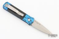 This Godson features a stonewashed blade, jazz aluminum frame with black G-10 inlays, tip up stainless steel clip. Comes with original box and papers. Excellent condition.
