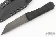 This REV by Auxiliary Manufacturing features an acid tumbled blade with textured spine, .177" blade stock and 1.017" blade depth. The handle has black G-10 scales. Comes with a kydex sheath with clip. New from maker!