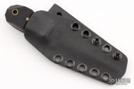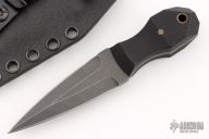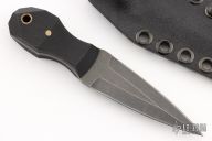This Pocket Rocket by Auxiliary Manufacturing features an acid tumbled double-edged blade with .141" blade stock and .880" blade depth. The handle has black linen micarta scales with brass pins. Comes with a kydex sheath with clip. New from maker!