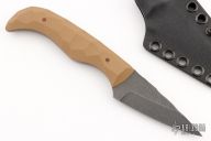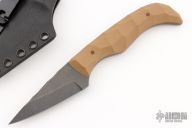 This Karl JR. by Auxiliary Manufacturing features an acid tumbled blade with textured spine, .137" blade stock and 1.014" blade depth. The handle has coyote G-10 scales. Comes with a kydex sheath with clip. New from maker!