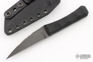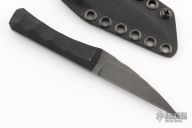 This Mini REV by Auxiliary Manufacturing features an acid tumbled blade with textured spine, .166" blade stock and .769" blade depth. The handle has black G-10 scales. Comes with a kydex sheath with clip. New from maker!