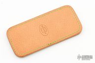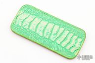 This leather slip sheath by Robertson Leather Works features Green Ostrich Leg Skin. It is 4.75" long by 2.25" wide. New from maker at the 2023 Blade Show West.