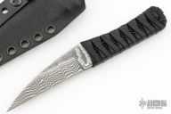 This Mini REV by Auxiliary Manufacturing features a Damascus blade, .201" blade stock and .821" blade depth. The handle has a black cord wrap over stingray. Comes with a kydex sheath with clip. New from maker!