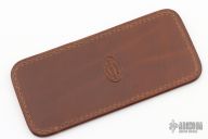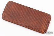 This leather slip sheath by Robertson Leather Works features lizard skin. It is 5.5" long by 2.5" wide. New from maker at the 2023 Blade Show West.