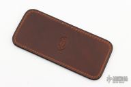 This leather slip sheath by Robertson Leather Works features lizard skin. It is 5.5" long by 2.5" wide. New from maker at the 2023 Blade Show West.